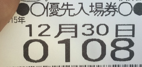 ですが、並びのルールで、100番ごとに並ぶ場所で整列があることを知らず、先頭の方で待ってたら時すでに遅し