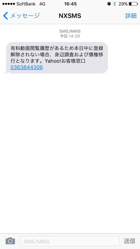 こんなメッセージがショートメールで届いて一瞬ドキッとした